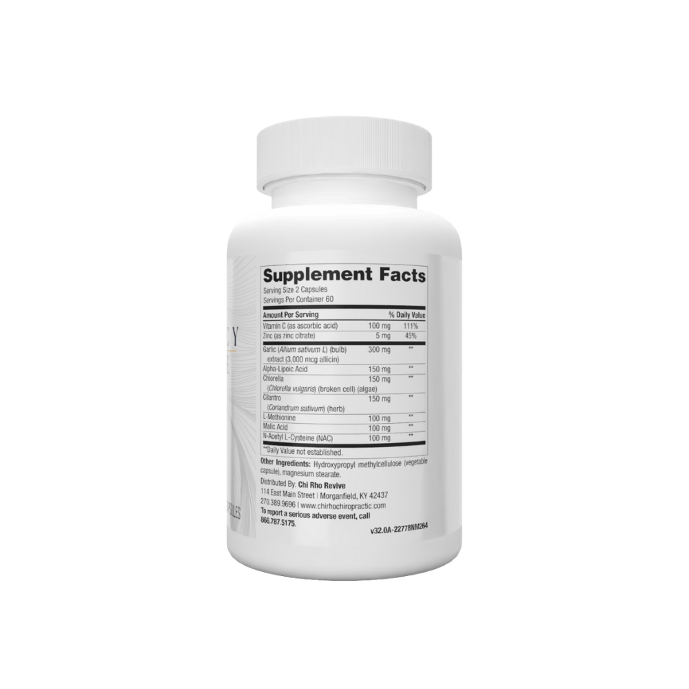 Cilantro and chlorella support the body's normal processes for responding to environmental heavy metal exposure. Zinc aids in supporting kidney function by increasing the production of cysteine-rich metallothionein proteins. N-Acetyl L-Cysteine (NAC) is a unique form of the amino acid l-cysteine which has been found to support healthy tissue levels of glutathione (GSH).