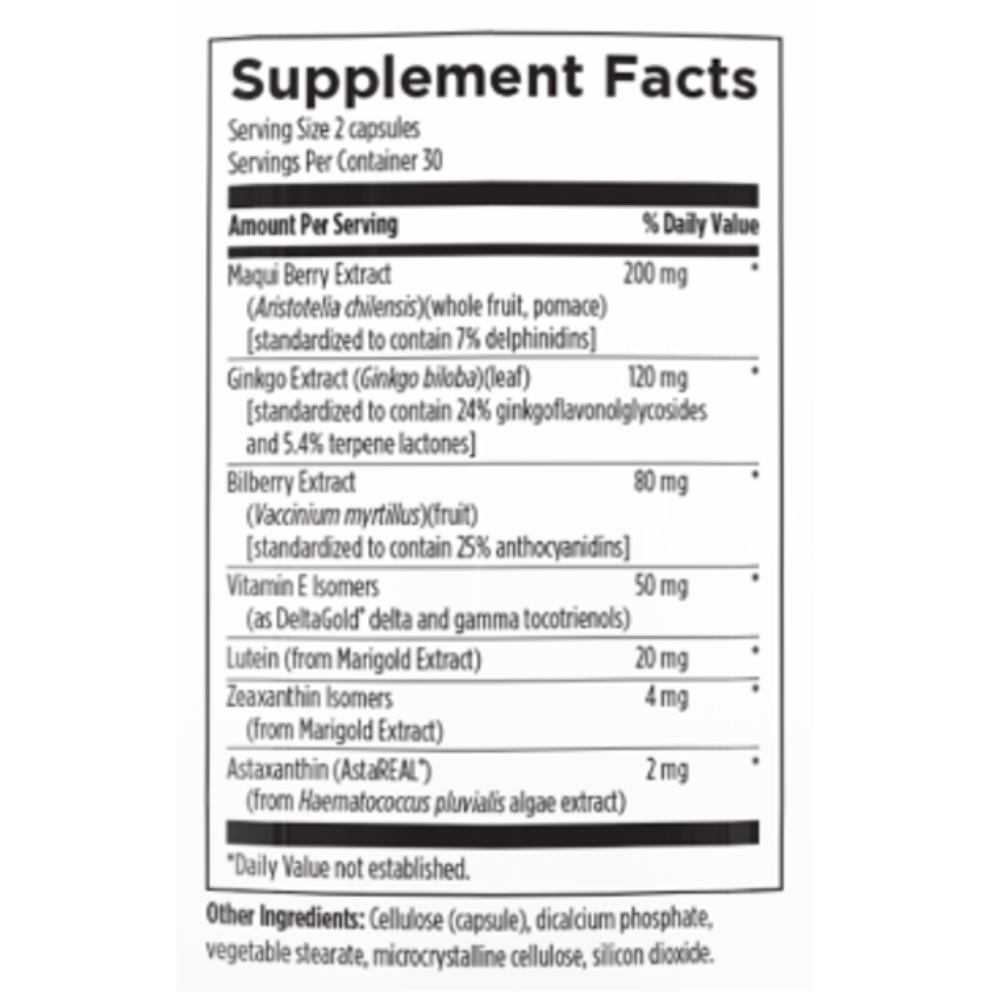 Oculus+ provides a targeted blend of macular-supportive nutrients formulated to help promote the eyes’ natural ability to filter blue light and reduce the effects associated with extended screen-time exposure. This formula is a synergistic combination of lutein and zeaxanthin isomers (as Lutemax 2020), maqui berry extract (as MaquiCare), ginkgo, bilberry, astaxanthin (as AstaREAL), and vitamin E isomers (as DeltaGold delta- and gamma-tocotrienols) designed to help protect the eyes from blue light damage. Oculus+is ideal for the teenage years through late adulthood or for anyone with prolonged exposure to blue light from screens who are seeking a preventative approach to help maintain healthy vision.